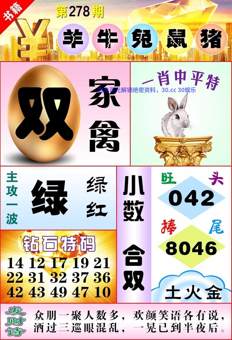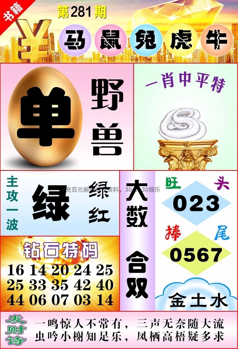 281期:八肖【兔狗蛇虎马猴猪】开:羊47准