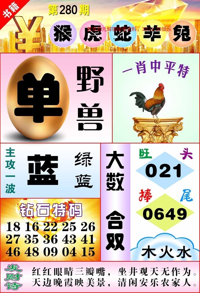 280期:八肖【鸡狗龙马虎猪兔】开:鼠42准